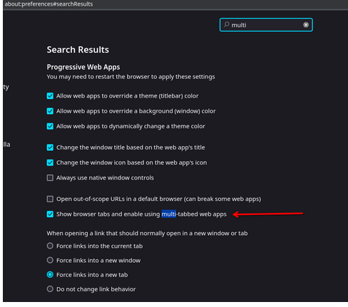 - Show browser tabs and enable using multi-tabbed web apps